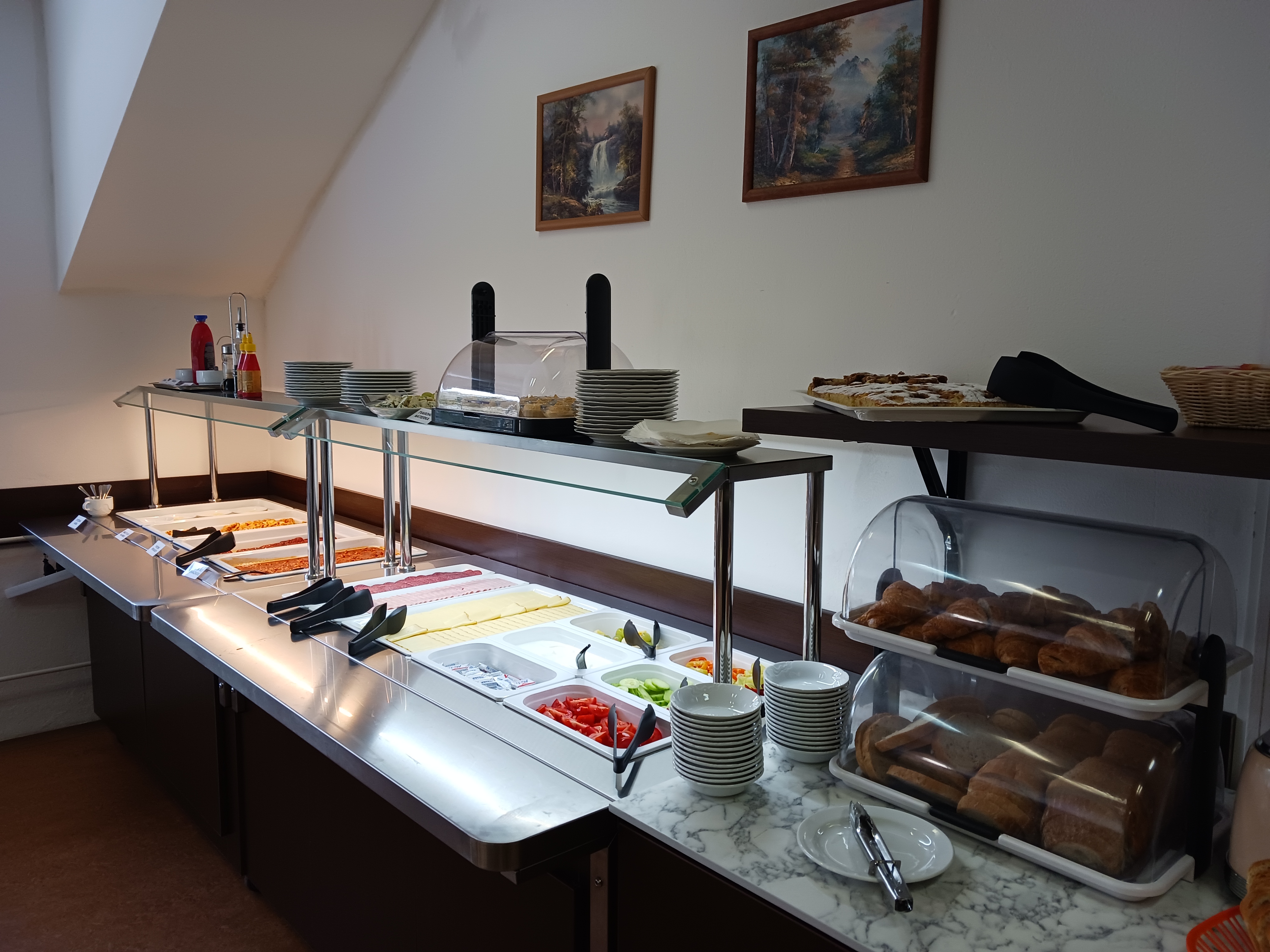 Celodenné stravovanie ubytovaným hosťom poskytuje jedáleň. Kapacita jedálne je 64 hostí. Raňajky sú podávané formou bufetov alebo servírované, obedy a večere sú servírované.